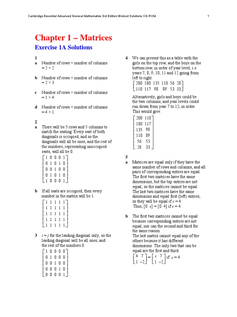 Advanced General Mathematics Worked Answers Enhanced Edition No Copy Write Infringement Intended Pdf Matrix Mathematics Determinant